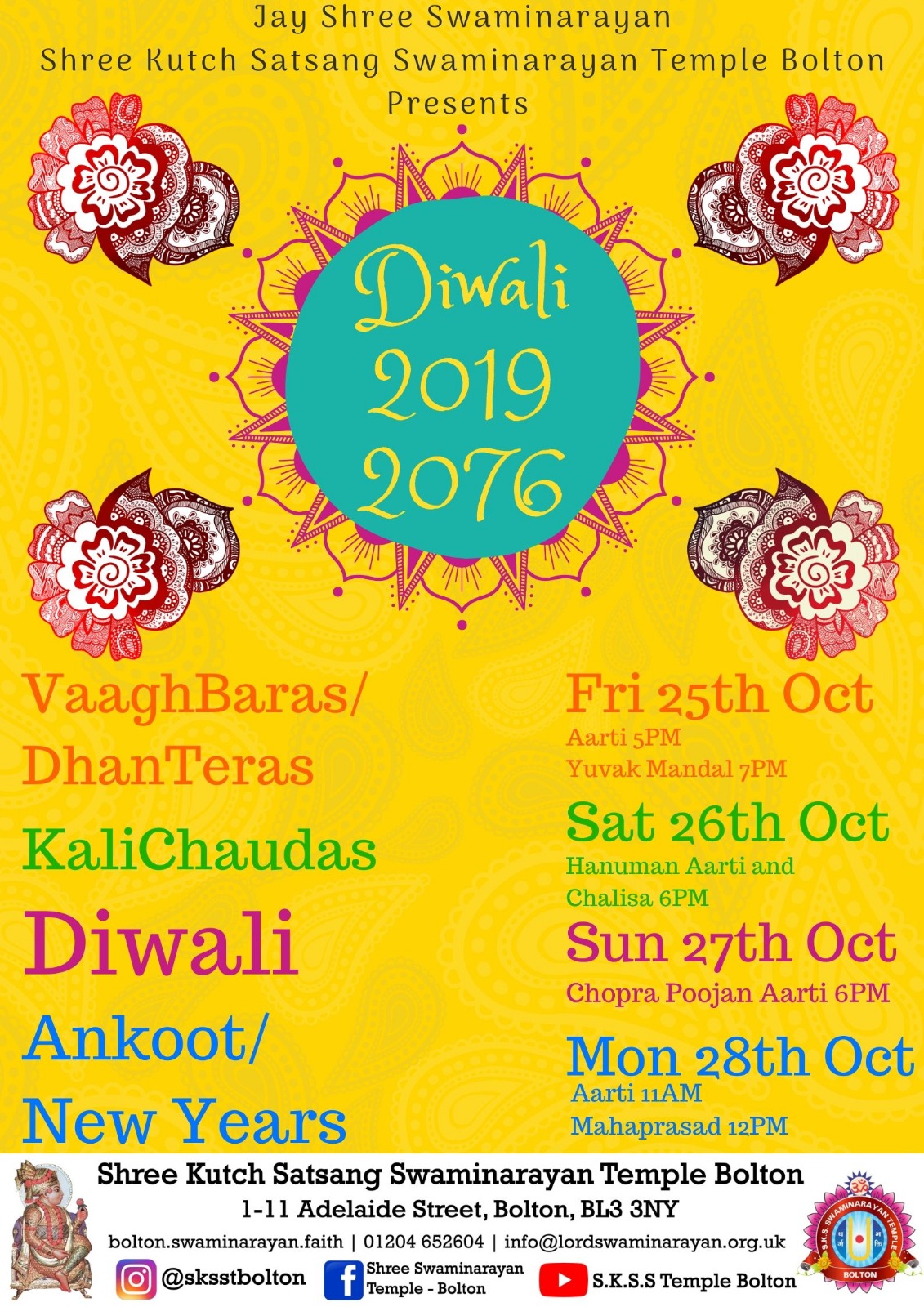 Please join SKSST Bolton in celebrating the most awaited time in the Hindu calendar. Friends will meet, families will hug, and children will play. Hope to see you all over the coming days.