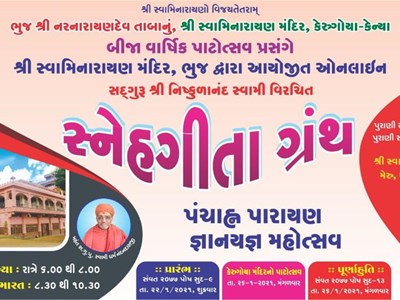 Shree Swaminarayan Temple Kerugoya, Kenya will be celebrating it's 2nd Patotsav from Friday 22nd January to Tuesday 26th January 2021. Katha will be narrated by Bhuj Santo who will be reciting the Sneh Gita katha from Bhuj.