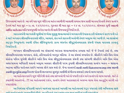 Mumbai Satsang Bhuvan - Thane will be celebrating their 8th Patotsav with the recital of Purushottam Prakash composed by Nishkulanand Swami in which he reveals the greatness of Maharaj. This event will be broadcasted live.