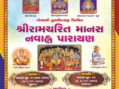 A nine day Ramcharitramanas katha composed by Goswami Tulsidasji will be held in Mumbai over a nine day period. The event will include various mini festivals and other events.