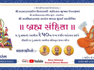 To celebrate Sadguru Brahmanand Swami's 250th Birth Anniversary there will be a Katha held on Saturday 5th February 2022 on a daily basis throughout the month.