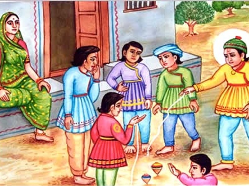 “O my God! Is this the reason?” she asked. She took him on her sides, fondled him and said, “Be sure that a top will be in your hands in the morning, O.K!” At last compromise was reached between the two. The next morning the sister-in-law brought a top for her dear brother-in-law. Ghanshyam was very much pleased and went to play, spinning the top, with his friends.