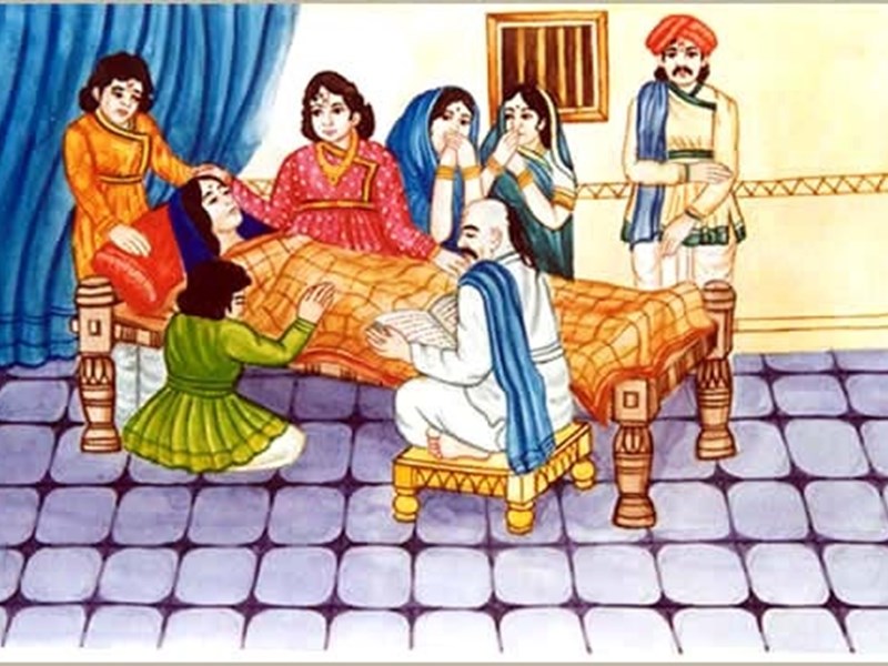 Dharmdev was staying along with his family in Ayodhyapuri. During this stay Bhaktimata fell ill. She said, “Take me back to Chhappaiya.” Everyone came back to Chhappiya with Bhaktimata. She said to young Ghanshyam, “I want to leave my body listening to a few words from your own mouth. O! Tell me about knowledge (Gyan) and devotion (Bhakti).